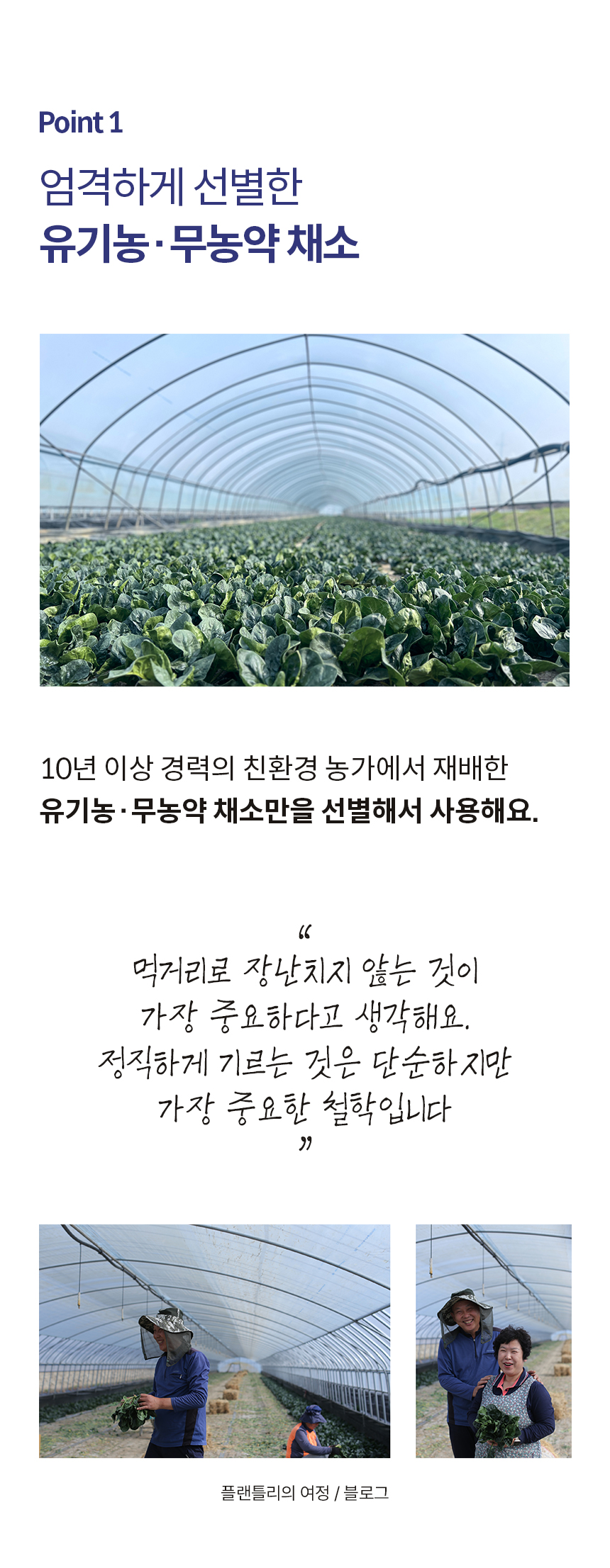 비트, 당근, 시금치, 케일은 육안 선별 및 세척한 뒤, 끓는 물에 데쳤다가 찬물에 식히는 블랜칭 과정을 거쳐요.